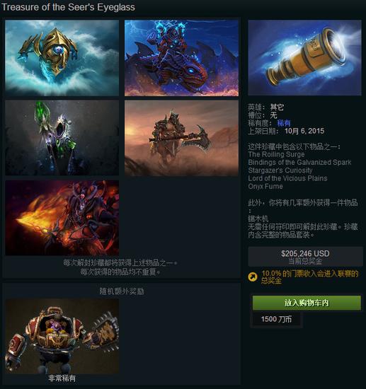 该珍藏宝箱的售价为1500刀币,其中宝箱的10%收入会加入联赛的奖金池,快来购买并开出你中意的套装吧,你们的购买也将为南洋杯助力!