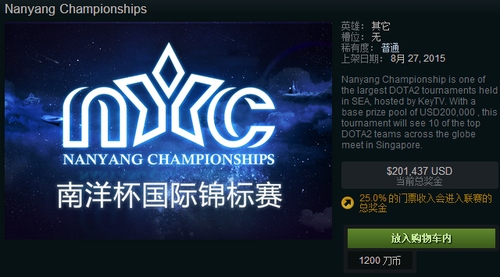 由中国专业电竞内容平台KeyTV和中国领先的网吧平台服务商顺网科技联合主办的首届南洋杯DOTA2国际锦标赛NanYang DOTA2