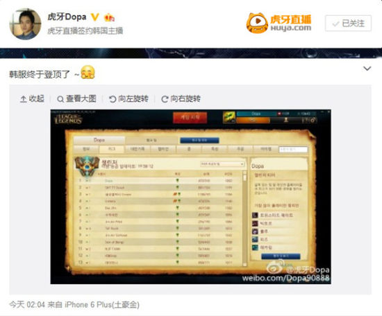 上周四(10月15日),虎牙知名LOL主播Dopa重新登顶韩服,重返国服第一的梦想将指日可待!作为韩国常年LOL路人王,曾经的国韩服双第一的王者,Dopa被称为“可以和Faker(世界第一中单)55开的男人”。日前,在Dopa登顶韩服后,小编有幸采访到这位神一样的男人,他向我们分享了他登顶韩服心得及S5赛事的看法。
