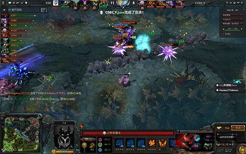TA利用队友帮忙拉的远古野迅速出到直接的关键装备暗灭,随后一波开5绕中路,打成一波0换3顺便拔掉天辉中路一塔。人头5比14CDEC.Y落后较大。