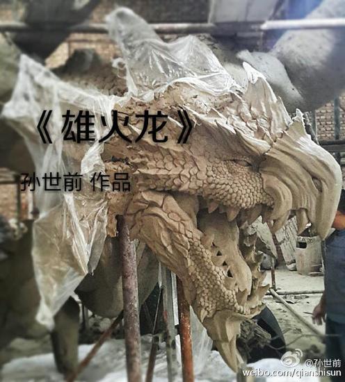 昨日微博博主“孙世前”晒出一张制作中的雄火龙头照片,并宣布这个宽达9米的雄火龙雕塑将于下月完工亮相。
