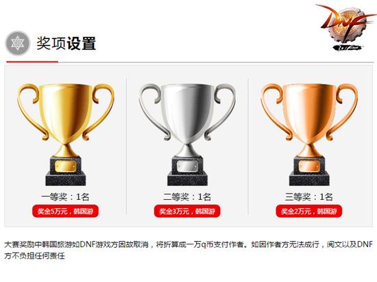 为了最大程度刺激全球华人的创作热情,本次征文大赛不仅在起点中文网、创世中文网等文学平台上大力推介作品,使之获得更多玩家的喜爱,而且准备了10万元现金大奖,以及多个韩国游的名额,犒赏本次大赛的参赛者。本次大赛将决出三等奖1名,奖金2万元和韩国游机会;二等奖1名,奖金3万元和韩国游机会;一等奖1名,奖金5万元和韩国游机会。更让人惊喜的是,若韩国旅游因游戏方等原因取消,官方将折算成一万Q币支付参赛者,真正意义上保障参赛者的利益。
