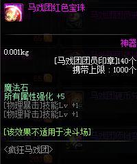 DNF马戏团改版据悉,官方首先将从装备奖励着手,取消原先性价比较低的装备奖励。考虑马戏团地下城的难度和面向的玩家群,游戏更新了一批属性上佳且拥有大量抗魔值的首饰套,为那些练级和刚满级的玩家提供挑战异界,并收集异界装备的装备基础。