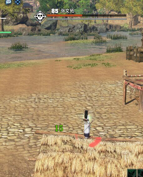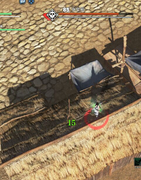 5。萧衍:卡BOSS对面左边鼓前面的2个小草房处。跟凌飞一样卡2个草房缝隙间。(注意要让BOSS攻击向草房内的车轮处。)你才在屋顶上攻击BOSS。