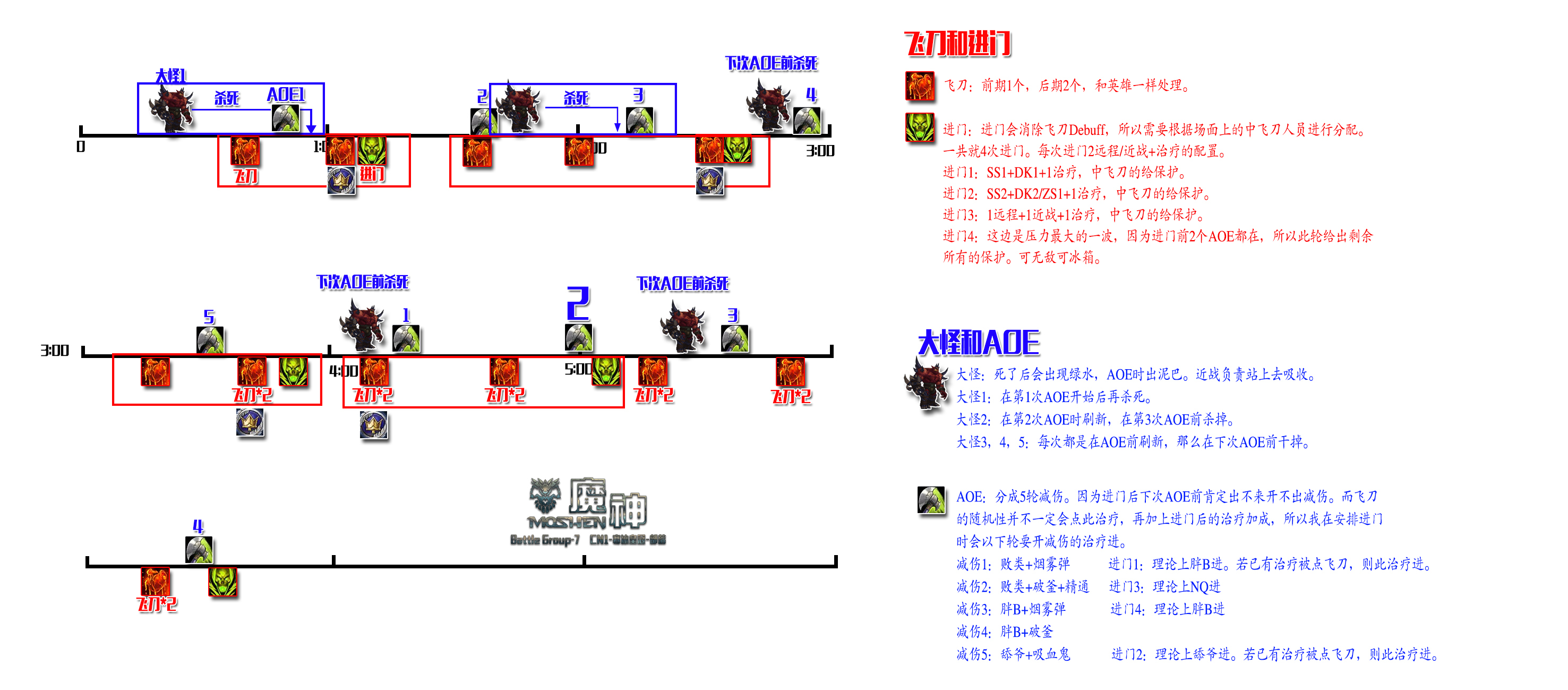 进门1:DK1+SS1+1治疗。如战术图所示,此时有2个人被点名过,有SS/DK/治疗的话最好,此SS/DK/治疗就进门,没的话那就算了,给出保护。