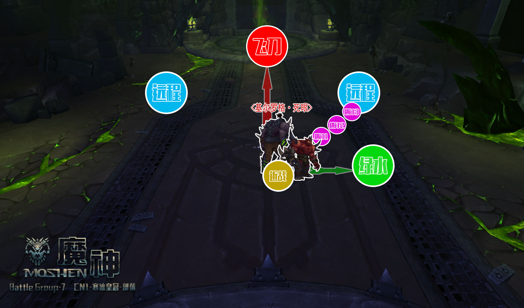 BOSS面朝左边/右边的人群方向,这样出来的进门的位置就是往人群那边出现。RL安排时安排进门1为进门的那近战的位置,进门2为远程,进门3为治疗,这样他们3个人去的时候就不会出错了。RL安排时同时让要进门的SS都在那左边/右边,减少其跑位。
