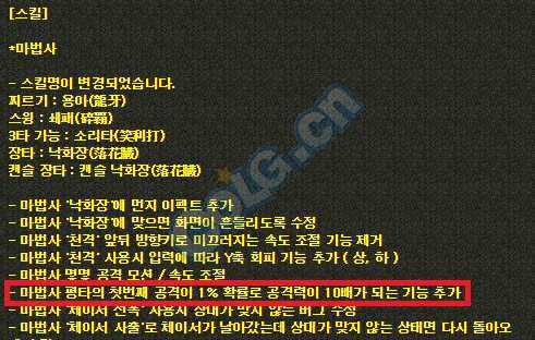 2006年1月19日,女魔法师在第一次攻击时1%几率攻击力增加10倍的功能在韩体验服首次正式更新。