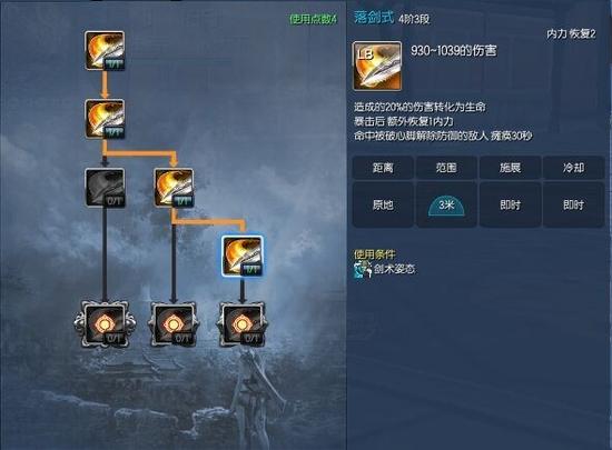 落剑 ,3点跟4点差的只是一个回血一个不回血,所以理论上说,3点就够了,毕竟回血少而且不靠落剑回血,落剑主要用来回内。