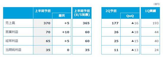 另外此次财报对2015财年第二财季的预测进行了修改。收益从原本的365亿日元调整到370亿日元(增加1.4%),营业利润从60亿日元调整到70亿日元(增加16.7%),净利润从60亿日元调整到了65亿日元(增加8.3%)。其调整的理由为第一财季的实际情况超越了原本预测,所以对第二财季的预测也做了向上调整。