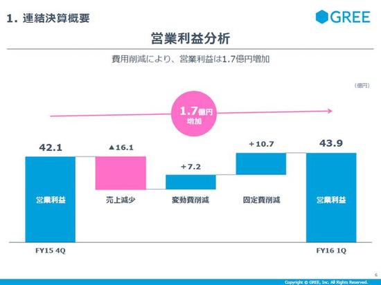从营业利润分析中得知,由于削减了费用营业利润增加了1.7亿日元。营收减少了大半的主要是由于网页游戏(微博),因为变动成本和固定成本的减少使得最终获益。