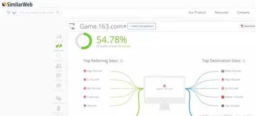 Similarweb:可以看到各家公司网站或app的流量来源和去处,甚至是各个按钮的流量。