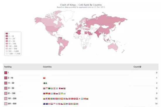 《列王的纷争》全球排名分布from:手游那点事