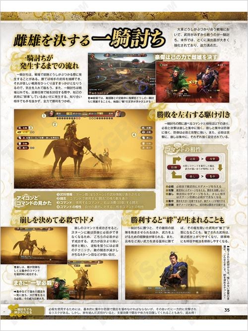 在战场上当部队相互接触时就有可能发生单挑的情况,如果战胜对手就可以直接擒拿对方武将,是一种有可能直接扭转战局的打法。而在战场之外,当进行巡查任务讨伐贼人或是向其它武将拜师学艺时也有可能发生单挑的事件。