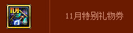 活动期间,每天账号内首次登录的角色将会获得1个【11月特别礼物券】。