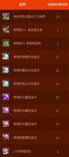 可以购买特制灵跃武器专用的装备强化券/装备锻造券/宝珠/永久兑换券的特别礼物券。 前往赛丽亚房间找到npc11月神秘大礼盒, 购买特制灵跃武器专用道具吧。