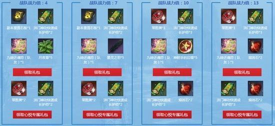 单Q可按照团队战力值多次领取礼包,领取礼包之后,则扣除相应战力值。