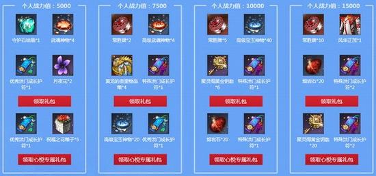 1、根据战力值,可领取相应的礼包。