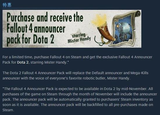 随着STEAM平台支持人民币商店的上线,国内PC玩家不仅可以买到打折的《辐射4》还可获得DOTA2游戏内的专属辐射播音员:Handy先生。