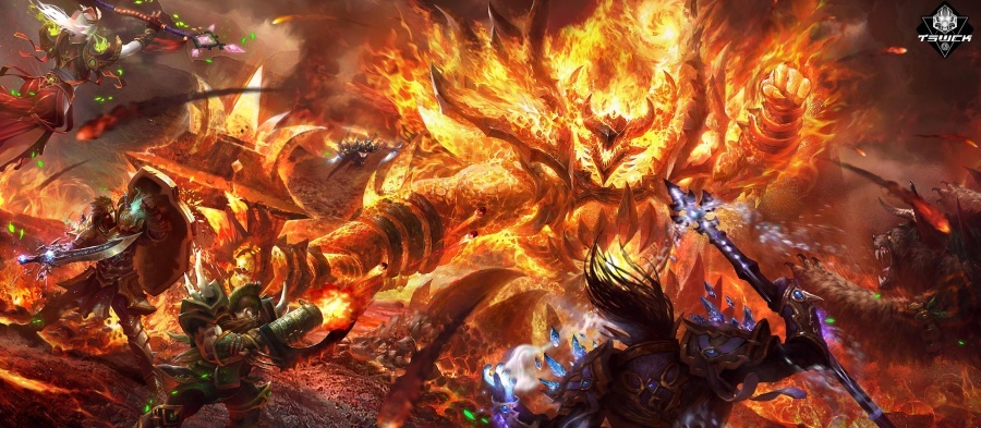 民间大神多:魔兽世界同人插画 炎王与不休之神