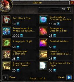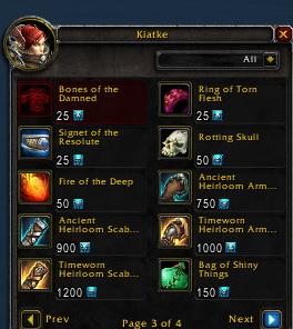 商人出售:变身瓦斯琪尔吉卜林玩具(持续10分钟,1小时冷却,游泳速度74%,可水下呼吸)1500徽章、之翼场景玩具3000枚、戒指25、饰品50、胸甲25、腰带25、护腕25、CTM声望徽章50,没有新坐骑,不出售WLK和TBC坐骑。
