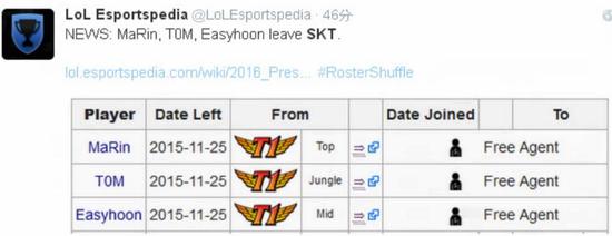 今天早些时候,SKT战队官方已经确认了Marin,T0M以及Easyhoon三名选手的离队,而国外网友则认为这种选择在情理之中。