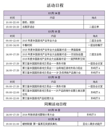 今日,大会主办方正式公布了2015年度中国游戏产业年会的详细日程,总裁茶话会、产业年会大会、产品经理大会、“游戏十强”盛典等活动将依次亮相。