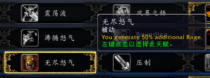 使你产生50%额外的怒气。(这个天赋并不影响嗜血的怒气生成 )