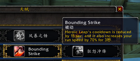 英勇飞跃的CD减少15秒,同时使你的移动速度提高70%,持续3秒。