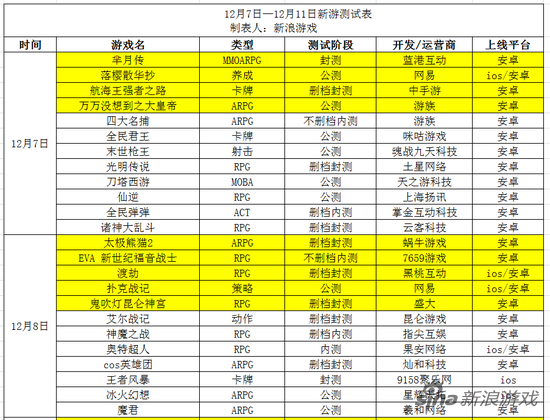 Q4最后一个月,游戏新品的战役仍然没有停止。本周仍有59款游戏上线,其中一线大厂火拼依旧,各大强IP轮番登出,例如《尸兄》,《芈月传》,《奔跑吧兄弟》,《山口山战记》,《EVA新世纪福音战士》,《鬼吹灯昆仑神宫》等大量强IP占领市场,冲榜潜力不可忽视。以下是本周新游表: