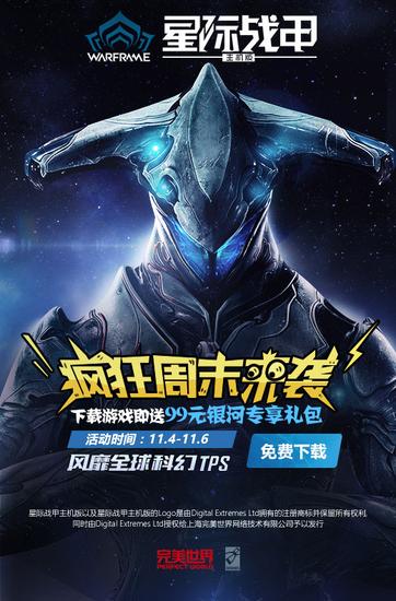 11月4日至11月6日三天,所有在PSN商店下载《星际战甲》主机版游戏的玩家,即可获得价值不菲的银河专享礼包。仅限三天,机不可失失不再来哦!