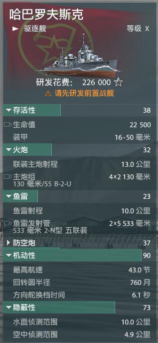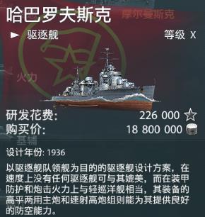 唯一的一艘真实的塔爹关于哈巴罗夫斯克,很难有相关资料查询(Wargaming玩的6),根据贴吧大神的不精准数据,这是一个24工程驱逐领舰,图纸舰,据说图纸航速高达47节,俄服上的人说24工程经过合理化修改后发展为47工程,而47工程和上面提到的35工程一起差点把基辅级驱逐领舰掐死到船台上。