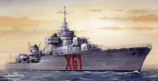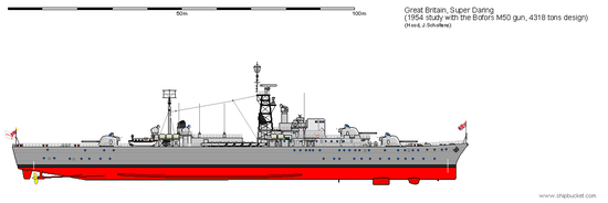 1950年代的超级果敢级驱逐领舰,最大设计吨位为4300吨,是全火炮DD,武器为3座双联博斯福120mm高平速射炮,每门炮射速为每分钟40发,停留在图纸上