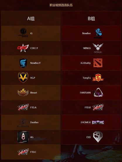 直接邀请主赛事战队:CDEC、EHOME、LGD和VG。