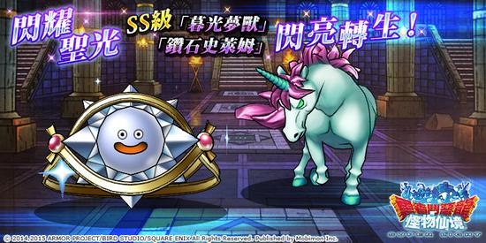 本周推出经‘让怪物转生’晋升成为 SS 级怪物 -“钻石史莱姆”。绽放著炫目光辉的史莱姆界的宝石。也许是因为令人联想到坚贞不渝的爱,有传闻说只要将它送给恋人,有情人就必会终成眷属。特技“基加迪恩”对单个敌人造成特大的光系伤害;“扎奥里库”确实复活单个己方成员。