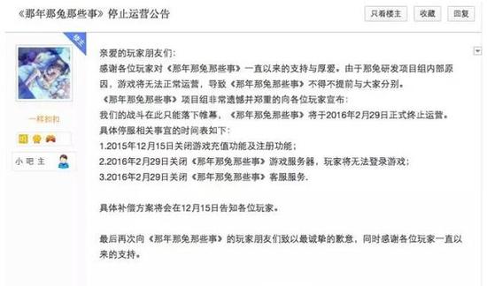 2.2016年2月29日关闭《那年那兔那些事》游戏服务器,玩家将无法登录游戏;