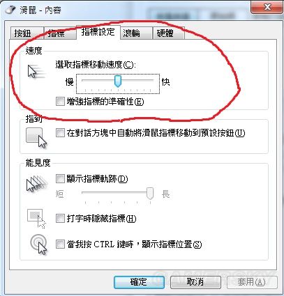 计算机内建 指针设定 - 指针移动速度(FPS基本) win7增强指标的准确性 不打勾