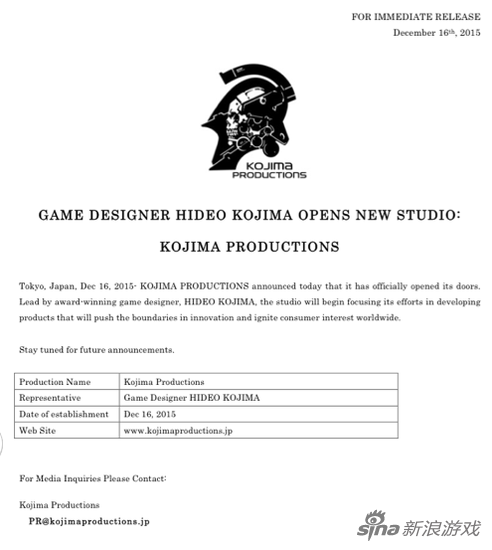 据日经新闻今日凌晨报道,小岛秀夫已经确认昨天从Konami离职,现在与小岛制作(Kojima Productions)的部分成员组建的新团队——Kojima Productions也正式挂牌成立。该工作室专注从事游戏开发工作,并且也和SCE达成协议成为战略合作伙伴,未来首款新作将优先在索尼的游戏平台上发售。