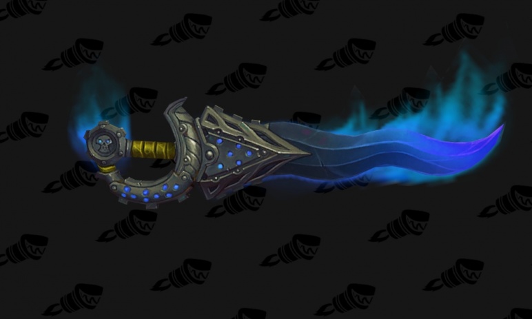 7.0新专精狂徒贼的神器恐惧之刃(命与运)一副精工铸造的弯刀,其中包括西洋剑和海盗弯刀两个可选造型,海盗弯刀今天更新了两个新的模型,加上固定可选的四种配色一共有8个新造型。