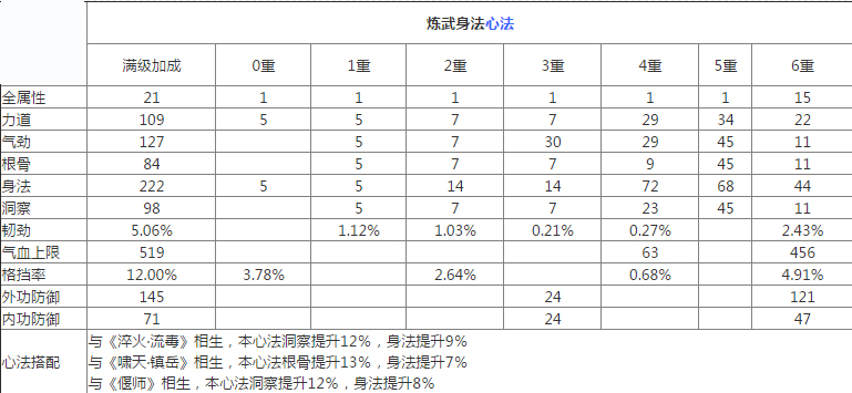 天涯明月刀炼武身法心法满级属性图 天刀心法大全