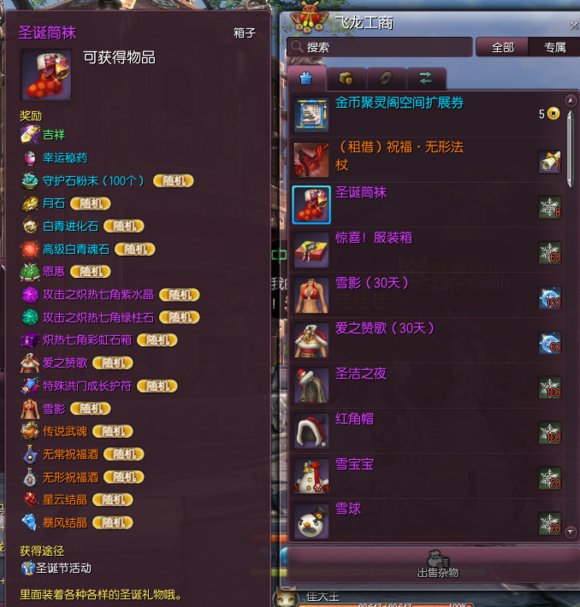 8个雪花可以获得圣诞袜,圣诞袜的奖励及其的诱人!绝版的时装,双属性的宝石和彩虹石,大经验符,高级魂石,相比对游戏内的市场材料价格又是一波冲击吧。