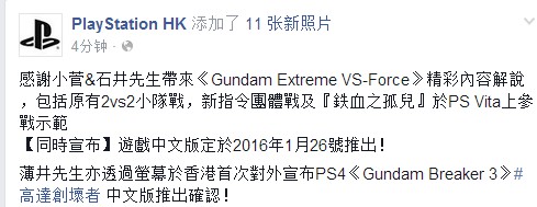 《高达破坏者3(Gundam Breaker 3)》于前几日正式公布,而中文版呢?今日在香港Toy Soul 2015上,官方正式公布游戏将会推出繁体中文版!