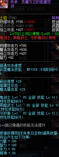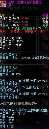 85级圣物武器和传承武器,在全身都使用传承或者圣物装备下增加的额外属性,对于现在来说的话,圣物的属性加成比之前是高了不少~