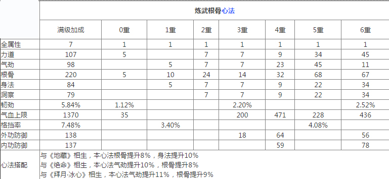 以上每重属性都是累积前面的总和。如五重属性为1-5重属性叠加。