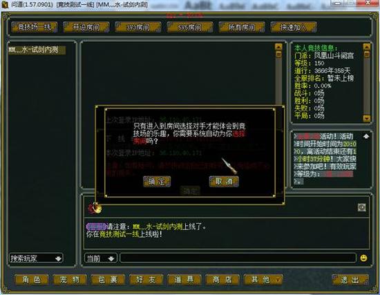 4.战斗为PVP战斗,此战斗不受死亡惩罚,宠物不掉忠诚度,装不掉耐久度,战斗结束后,玩家回到竞技场大厅界面中