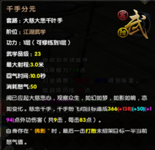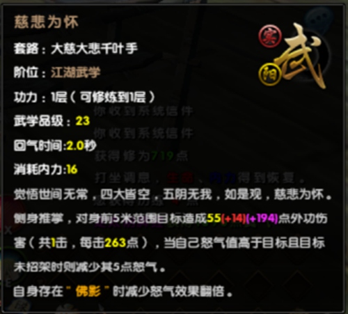 自12月18日九阴真经新版本“禅宗达摩”携新门派达摩问世后,达摩派的地图场景可谓万人空巷。许多侠士挤破了脑袋都想进达摩派一瞻新门派风采。众所周知,达摩派有棍法套路和徒手套路两套武学。今日来自贴吧的侠士“楚琉问荭辰”便对达摩派的徒手套路——大慈大悲千叶手,进行了一番测评,让我们一同来看看。