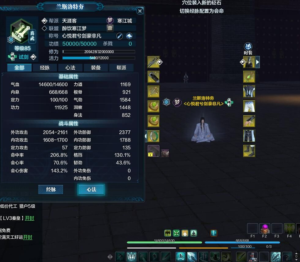 首先是我比较常用的,会命石头真武70+会心,作为一个,1点洞察0.01会心的残疾职业我真的尽力了,火花点到95了。不是什么土豪,弄不起青莲,话说神豪真武,带3个青莲95左右的会心,还是非常不错的。