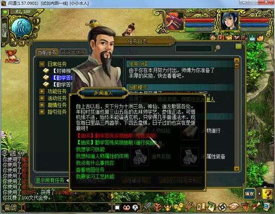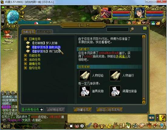 2.当本月新增道行达到等级标道一定倍数后,获得【勤学苦练】奖励任务