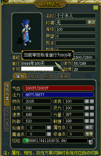 3.当玩家每获得道行时,要累积“道行”和“本月道行”内时,需要分别按照玩家的道行情况进行削减。
