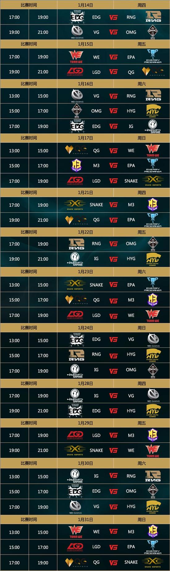 LPL春季赛1月14日-1月31日赛程【2月18日-3月20日阶段(异组对抗)】
