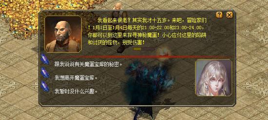 魔蛋宝仔兴致勃勃地跟你说起有关这里的一切。原来宝库深处藏着一些炫金魔蛋和晶蓝魔蛋,有缘找到它们的人将能用相应的魔锤砸开它们获得丰厚奖励!但宝库内不仅陷阱四伏,更有怪物猖獗,想要在其中探寻魔蛋宝物并非易事。